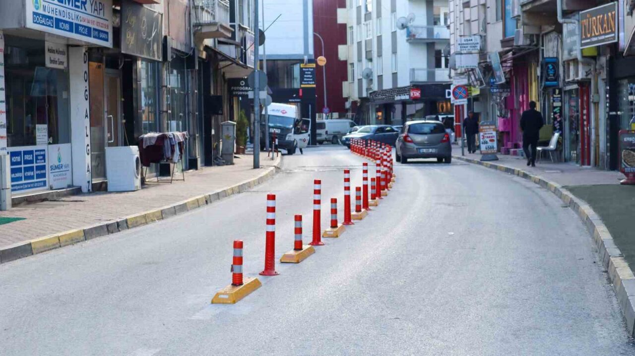 Uşak Belediyesi kent merkezinde yol bölme butonları uygulamasını hayata geçirdi.