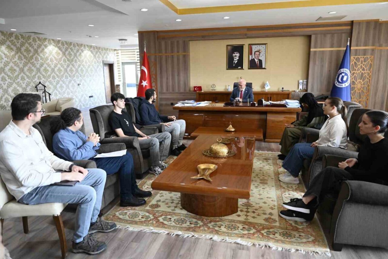 Fransa’nın tanınmış eğitim kurumu Sorbonne Paris Nord Üniversitesi’nden gelen Haoi-Alliyah Heather Ahamadı ve Abdallah Ben Fguıra, Moldova’nın önde gelen ekonomi akademisi olan Academy of Economic Studies of Moldova’dan İrina İspir ve Aureliu Tescu ile Kosova’nın University of İsa Boletini Mitrovica‘dan Ardita Abazi, Uşak Üniversitesi Rektörü Prof. Dr. Ekrem Savaş’ı makamında ziyaret etti. Yapılan görüşmede, öğrenciler Uşak Üniversitesi’nin sunduğu eğitim fırsatlarından duydukları memnuniyeti dile getirirken, Rektör Savaş da onları üniversitede ağırlamaktan mutluluk duyduğunu belirtti.