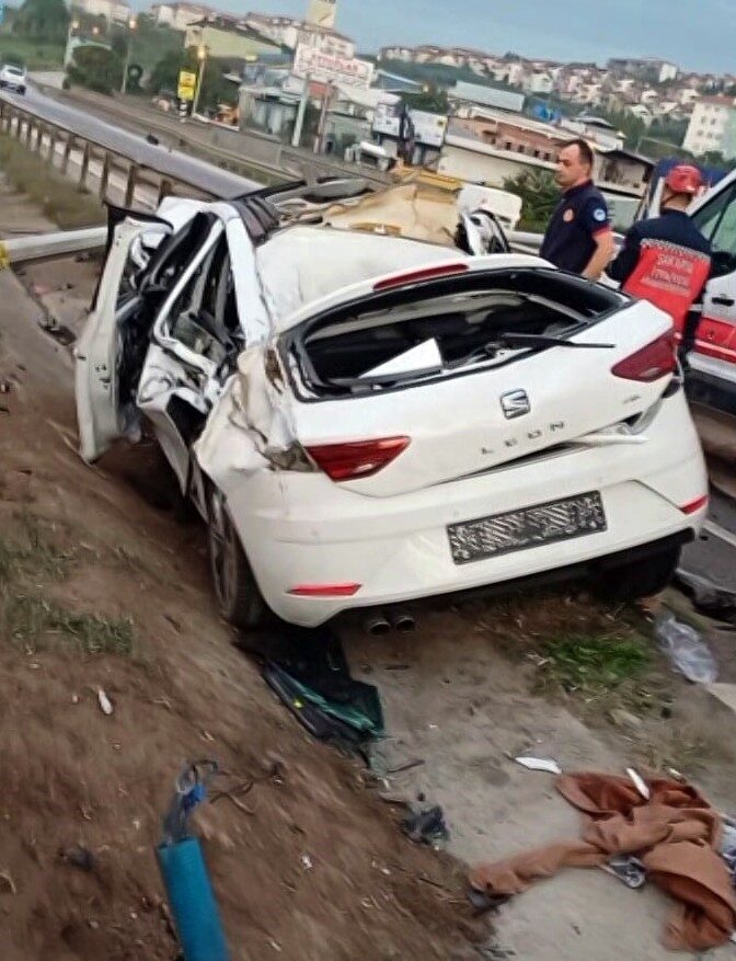 SAKARYA’NIN SERDİVAN İLÇESİ D-100 KARA YOLUNDA SABAH SAATLERİNDE MEYDANA GELEN KAZADA, İŞE GİTMEK İÇİN YOLA ÇIKAN SÜRÜCÜ ÖNÜNE ÇIKAN KÖPEĞE ÇARPMAMAK İÇİN MANEVRA YAPINCA DİREKSİYON HAKİMİYETİNİ KAYBETTİ. KONTROLDEN ÇIKAN OTOMOBİL BARİYERLERİ AŞARAK AYDINLATMA DİREĞİNE ÇARPTI. ARAÇ ADETA KAĞIT GİBİ EZİLİP PARÇALARA AYRILIRKEN, SÜRÜCÜ DIŞARI FIRLAYIP OTOMOBİLİN ALTINDA KALDI. FECİ KAZADA 1 KİŞİ AĞIR YARALANDI.