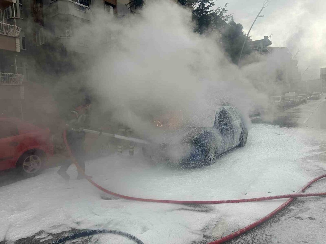 Yangın sonucunda can kaybı ya da yaralanma meydana gelmezken, otomobilde maddi hasar oluştu.