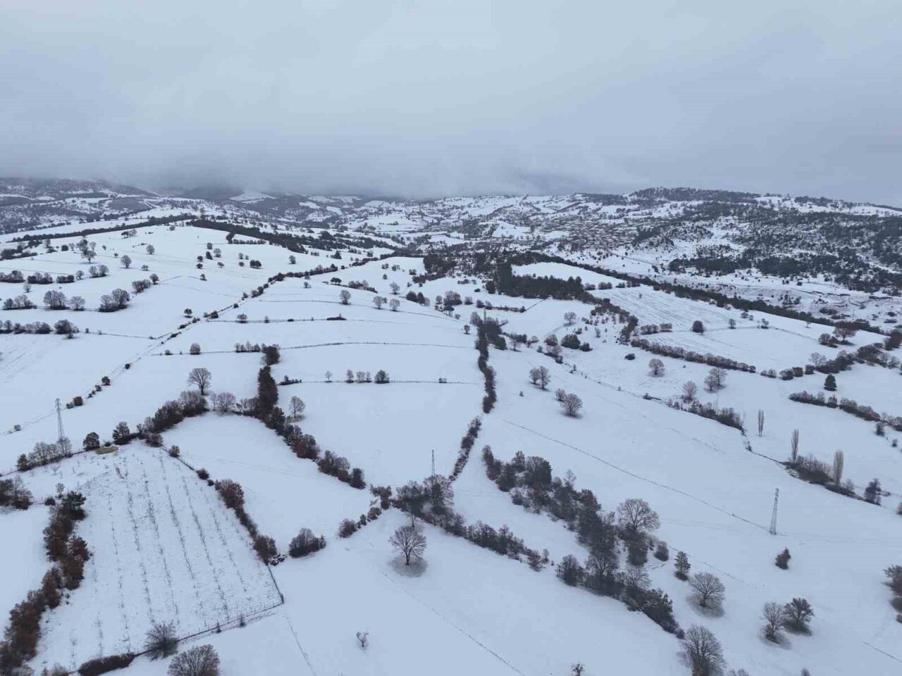 Öte yandan kar yağışının etkili olduğu bölgeler dron ile havadan görüntülendi.