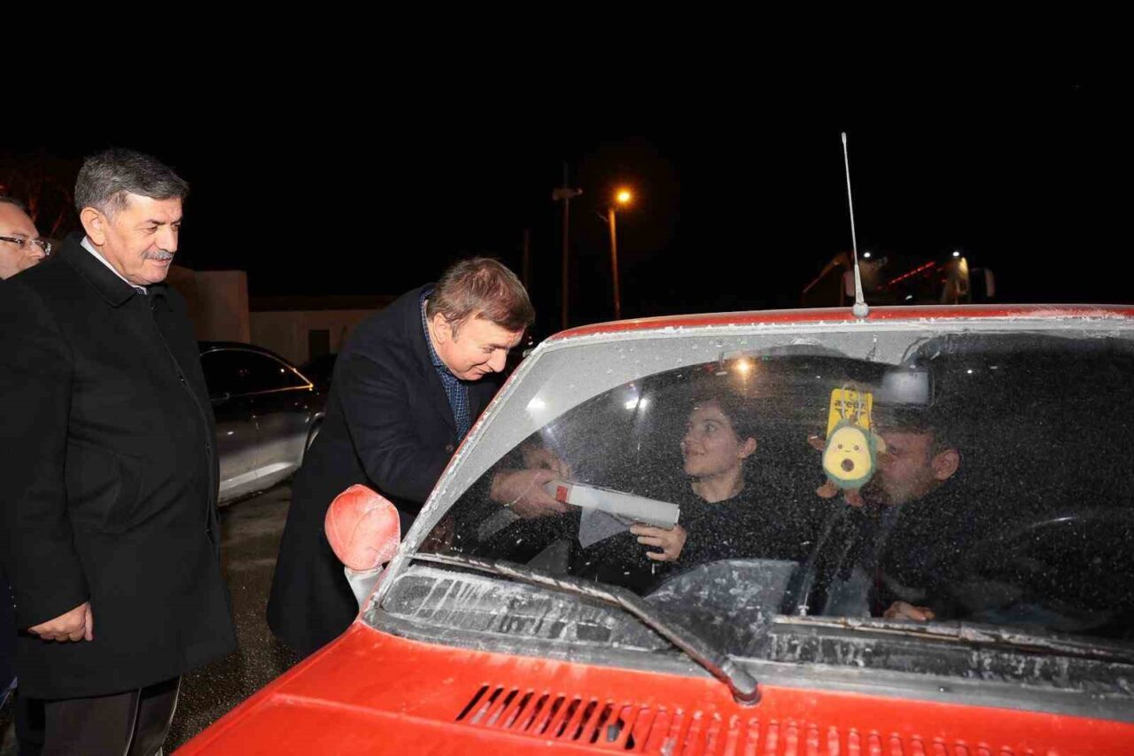 Ziyaret kapsamında trafik denetimi yapılan araç sürücüleri ve yolcuların da yeni yılını tebrik eden Vali Aydoğdu, vatandaşlara ikramlarda bulunarak hayırlı yolculuklar diledi.
