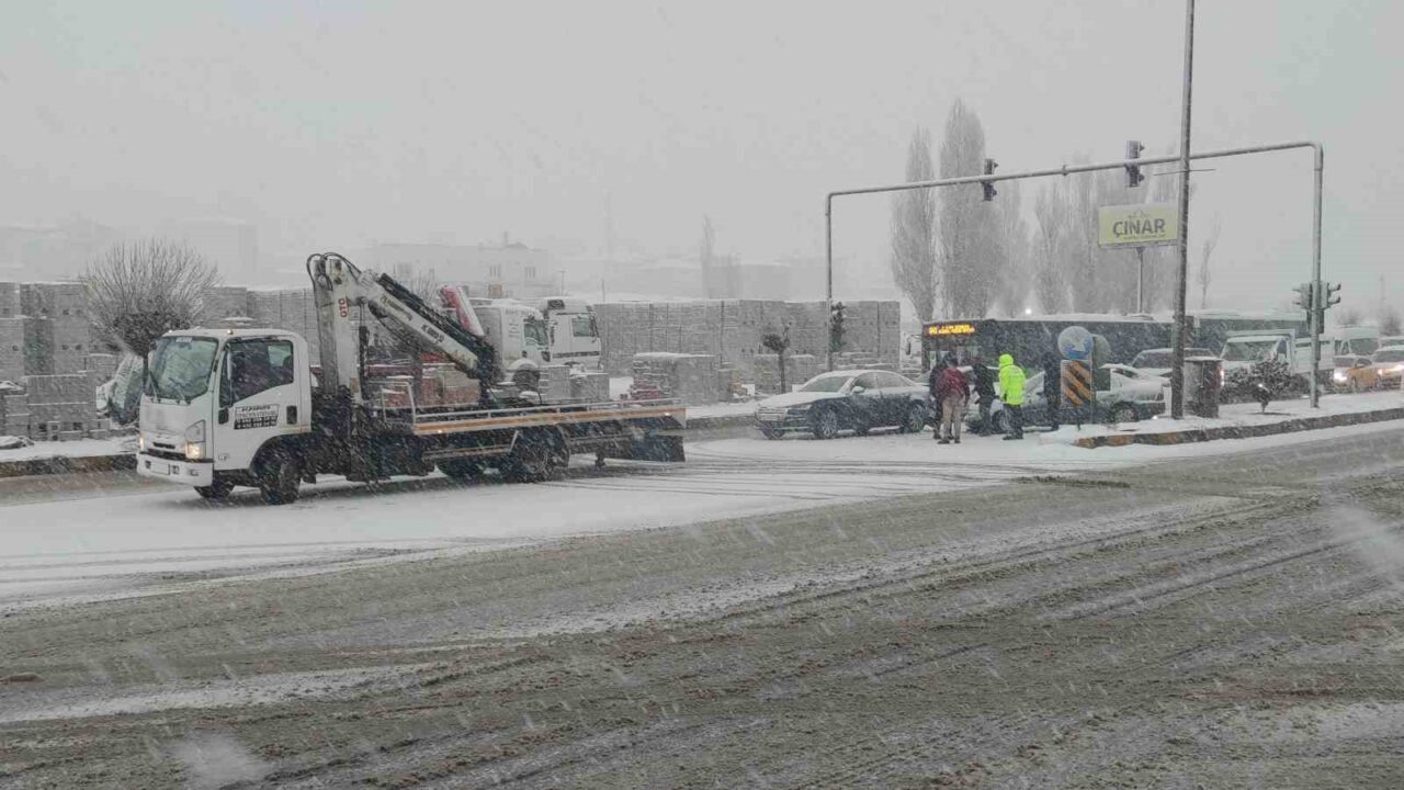 Van’da akşam saatlerinde etkili olan kar yağışı, kent genelinde trafiği olumsuz yönde etkiledi ve maddi hasarlı kazaların meydana gelmesine sebep oldu.