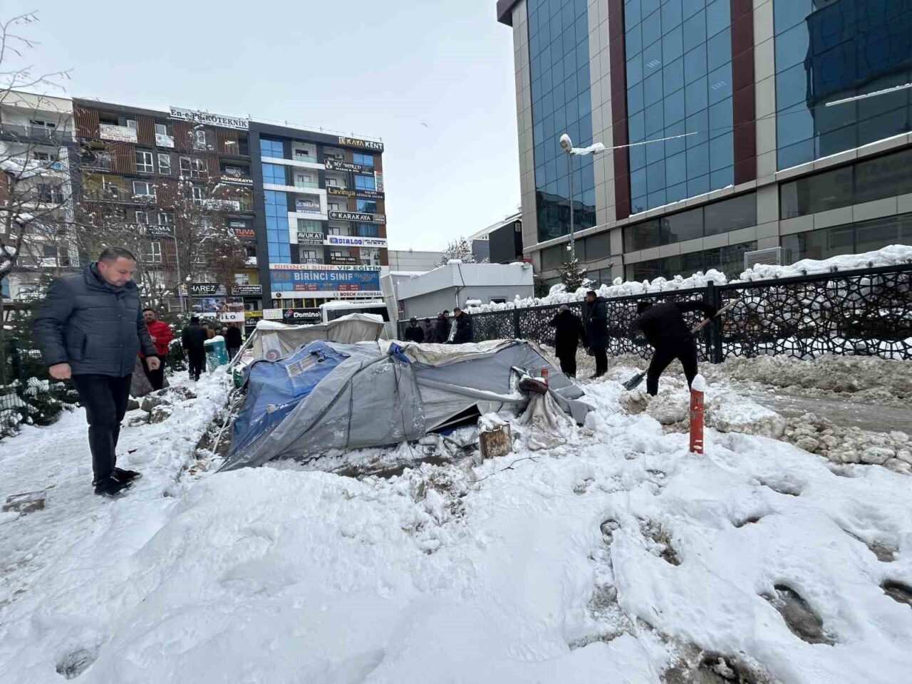 Van’da işten çıkarılan işçilerin eylem çadırı kar yağışı nedeniyle çöktü