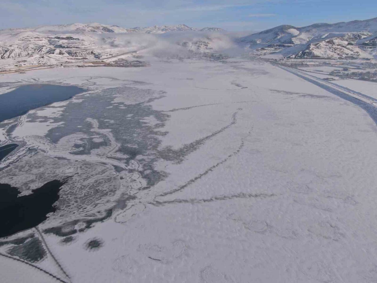 Sibirya soğuklarının hakim olduğu Van’da Sıhke Göleti’nin yüzeyi tamamen dondu
