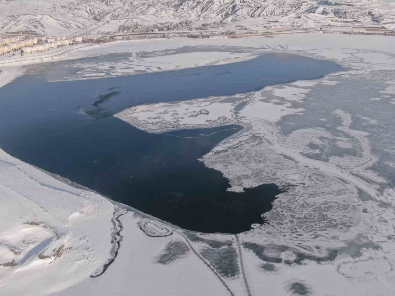 Doğu Anadolu Bölgesi’ni etkisi altına alan dondurucu Sibirya soğukları, Van’da hayatı durma noktasına getirdi. Hava sıcaklığının gece sıfırın altına düşmesiyle birlikte, şehrin önemli su kaynaklarından biri olan Sıhke Göleti’nin yüzeyi tamamen buzla kaplandı. Soğuk havanın etkisiyle buzla kaplanan gölet, ortaya kartpostallık görüntüler çıkardı.
