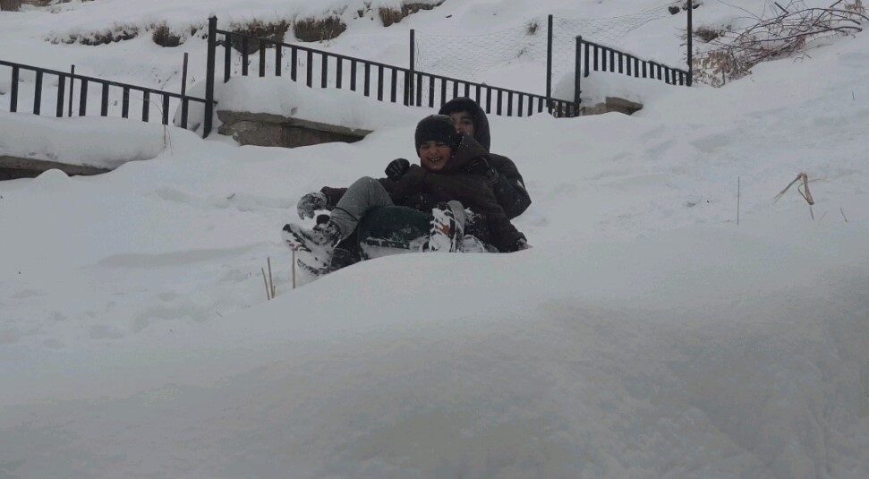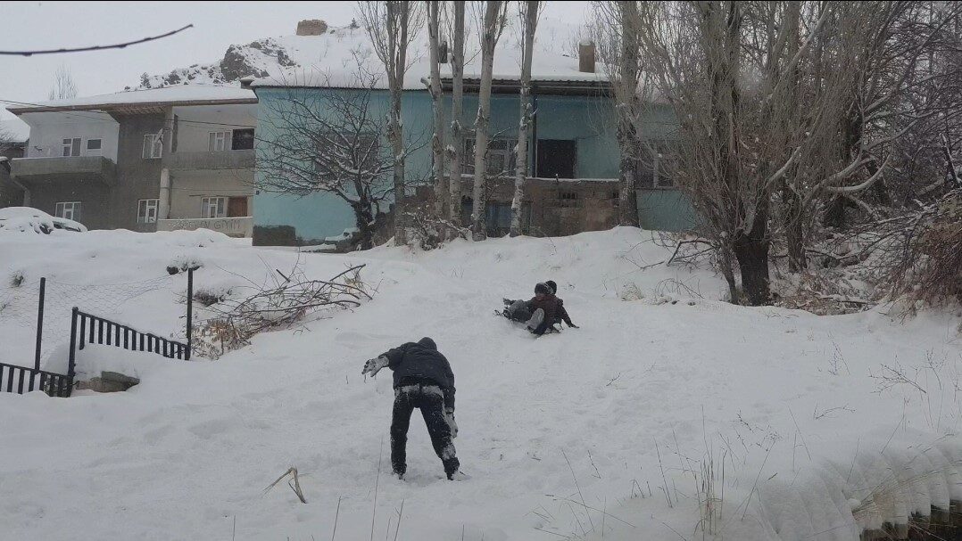 Öte yandan okulların tatil olduğu ilçede çocuklar da karda kayıp karın keyfini çıkarıyor.