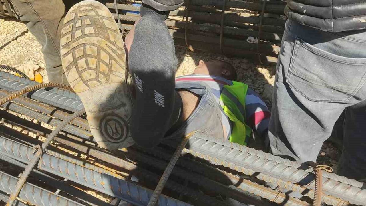 Hatay'da şantiyede çalışan işçinin üzerine vincin taşıdığı demir kolon düştü. Dakikalar süren çalışmayla demir kolonun altından kurtarılan işçi ağır yaralandı.