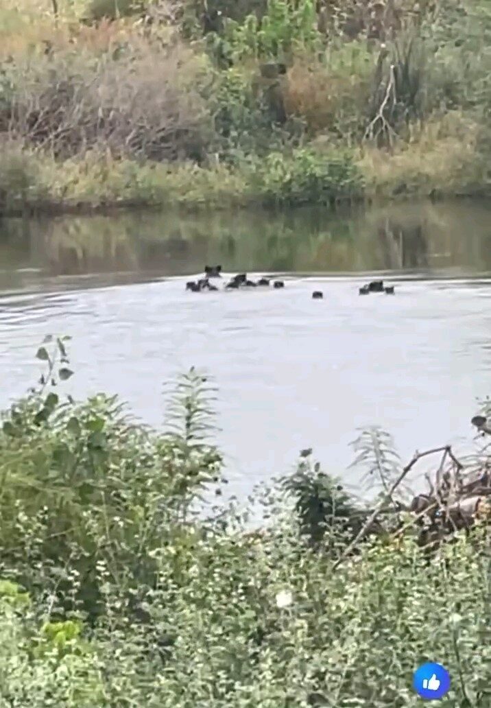 Görüntüleri çeken vatandaşlar, domuzların suyu geçiş anını hayranlıkla izlerken, bu doğal anlar adeta bir izleme etkinliğine dönüştü.