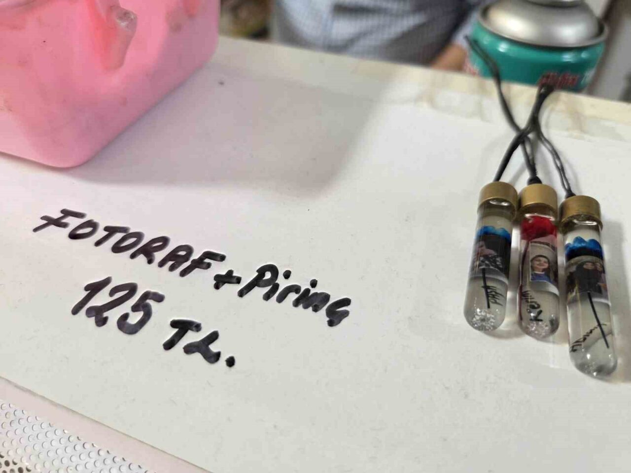 Hediyelik eşya dünyasında uzun bir süre ilgi çeken isim yazılı pirinç tanesi kolyeler, yerini son zamanların gözde ürünü olan fotoğraf, bebek dişi ve bebek saçı içeren kolyelere bırakmış görünüyor.