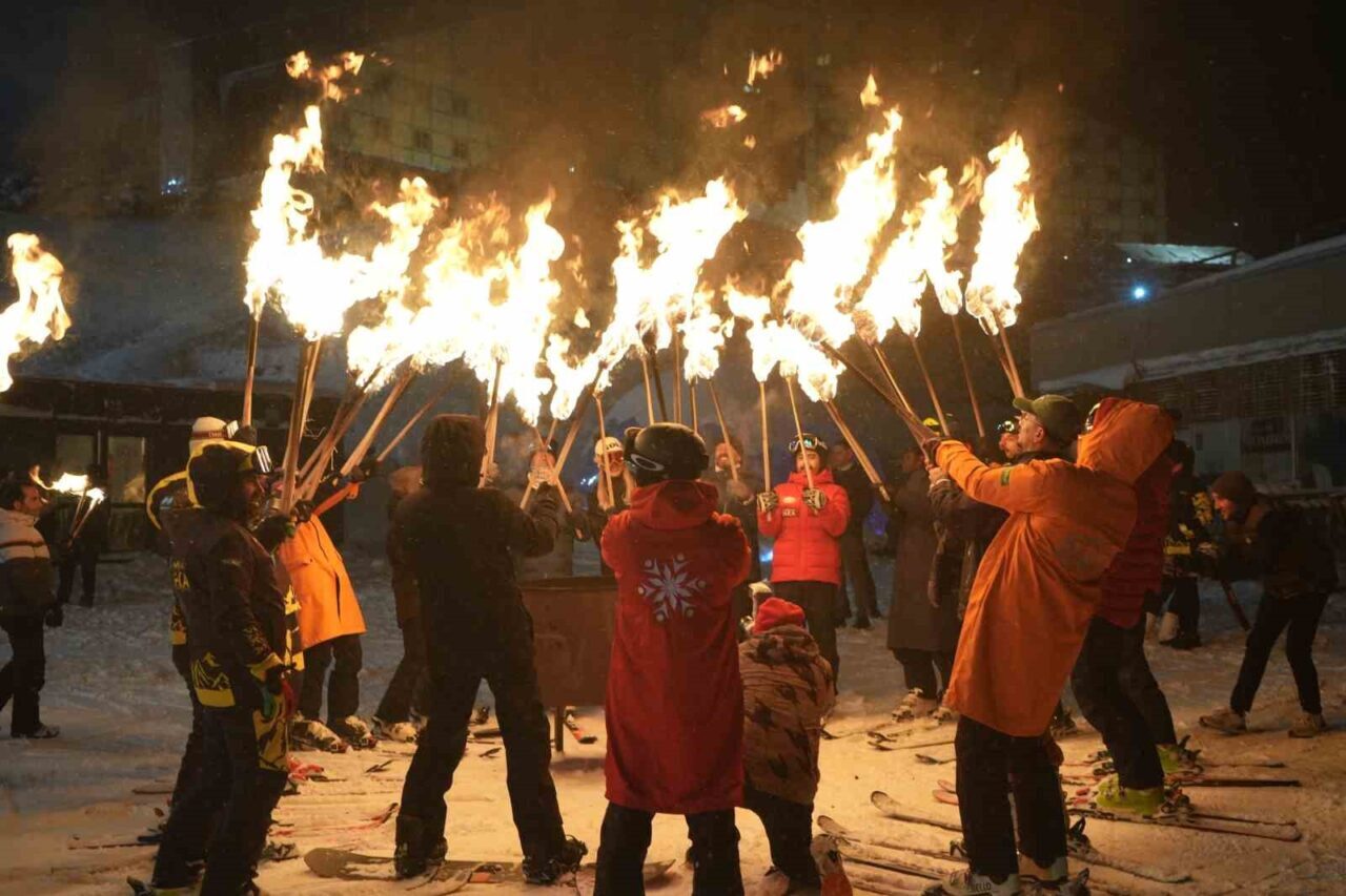 Kış turizminin gözde mekanlarından Erzurum Palandöken’de yılbaşı tatilini geçiren yerli ve yabancı misafirler, yeni yıla meşaleli kayak gösterisiyle girdi.