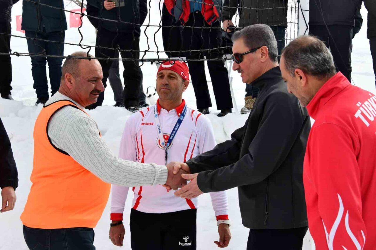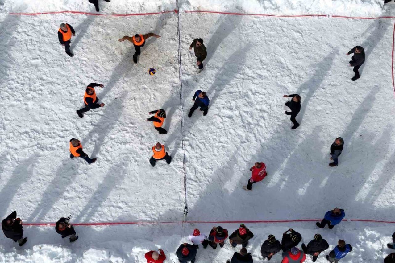 Denizden 2 bin 100 metre yükseklikte bulunan ve kış mevsiminin çetin geçtiği köyde yıllar önce başlatılan kar üstünde voleybol etkinliği bu yıl şenlik havasında geniş bir katılımla gerçekleştirildi.