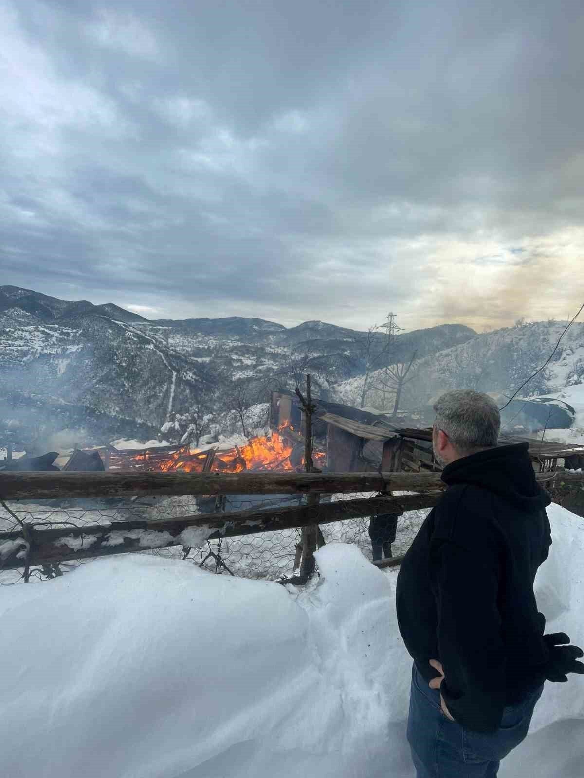 Karabük’ün Yenice ilçesinde alevlere teslim olan ahşap ev tamamen yanarak kullanılmaz hale geldi.
