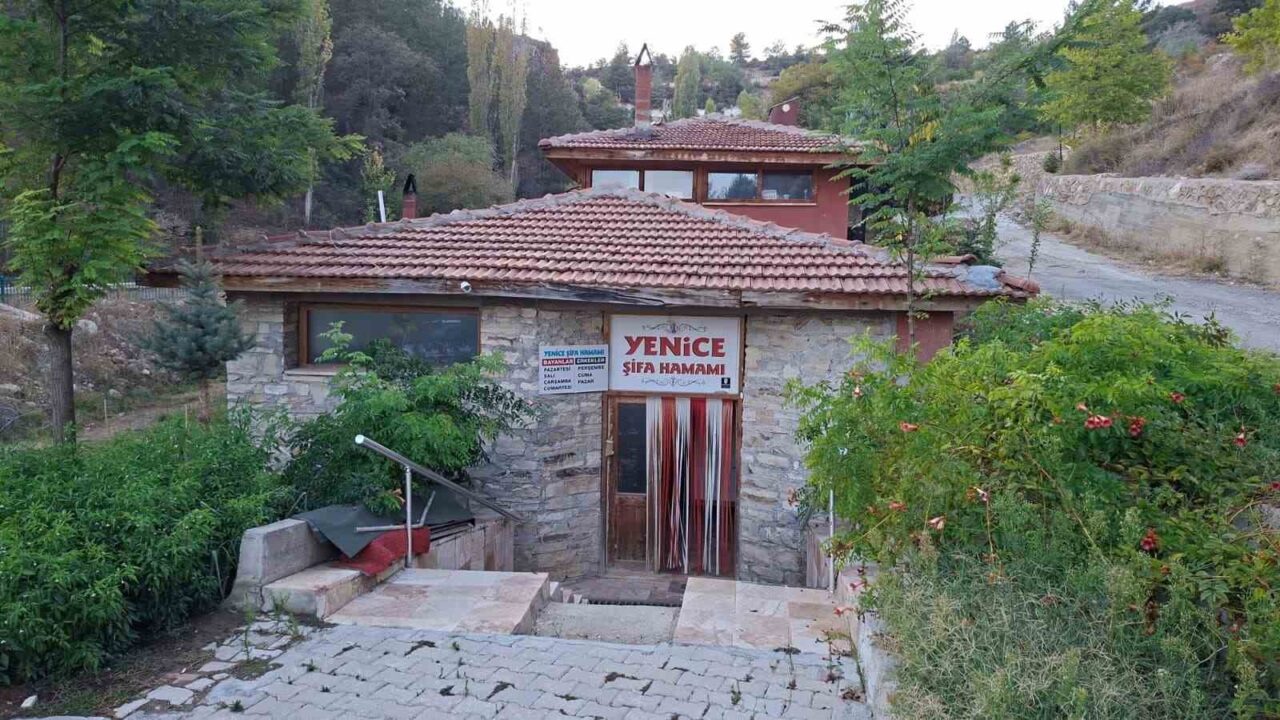 Kütahya’nın Emet ilçesinin Yeniceköy mahallesinde yer alan tarihi Yenice Şifa Hamamı, doğal sıcak su kaynağı ve devasa boyutlardaki kayası ile dikkatleri üzerine çekiyor.