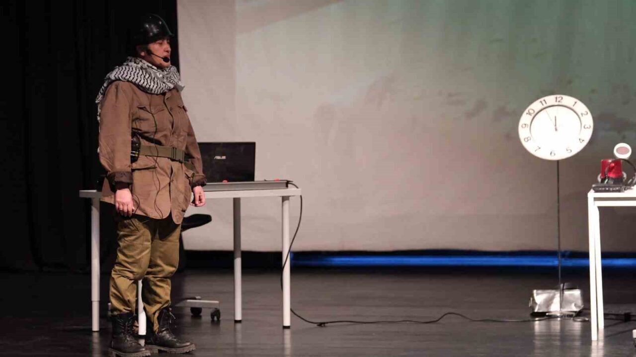 Barış Manço Kültür Merkezi’nde sahnelenen oyuna Yıldırımlılar yoğun ilgi gösterdi. Askerlerini kolaylıkla ölüme gönderen ve düşünmeden başkalarının infaz emrini veren hırslı ve acımasız bir komutanın Azrail’le yüzleşmesini konu edinen oyun, izleyicilerden tam not aldı.