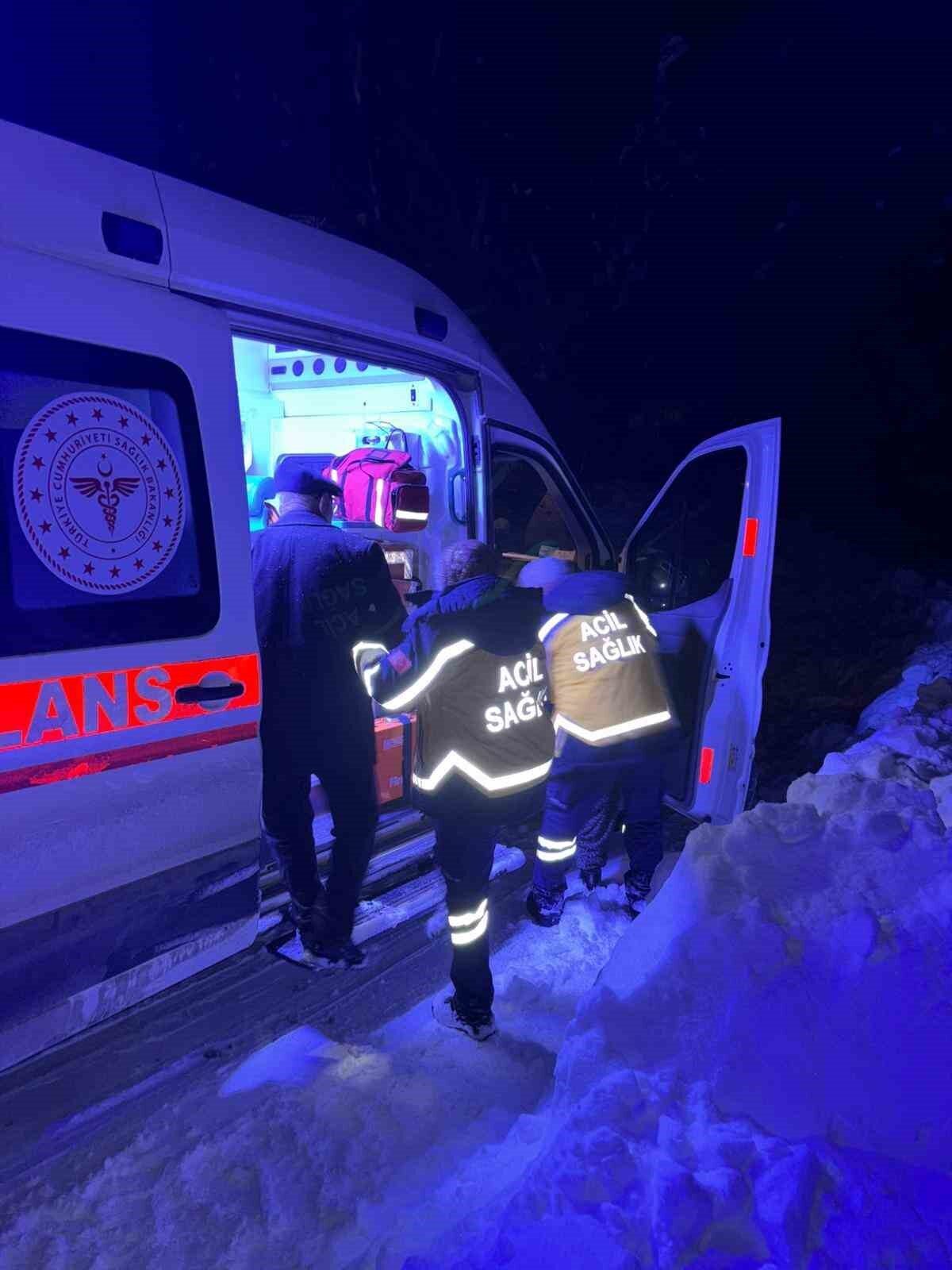 Yoğun kar nedeniyle mahsur kalan hasta, 5 saatlik çalışmayla hastaneye sevk edildi.