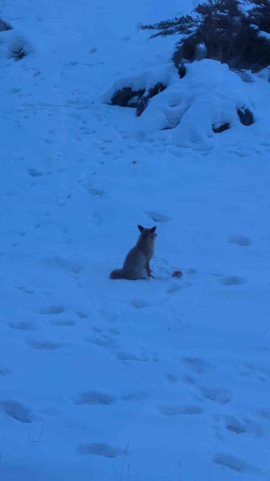 Sabahın erken saatlerinde aç olduğu düşünülen tilki, Yozgat Valiliği bahçesinde dolaşmaya başladı. Durumu fark eden kurum çalışanları, tilkiye yiyecek verdi. O anları cep telefonu kamerasıyla görüntüleyen personel, tilkinin çevreye dikkat kesildiği anları kaydetti.