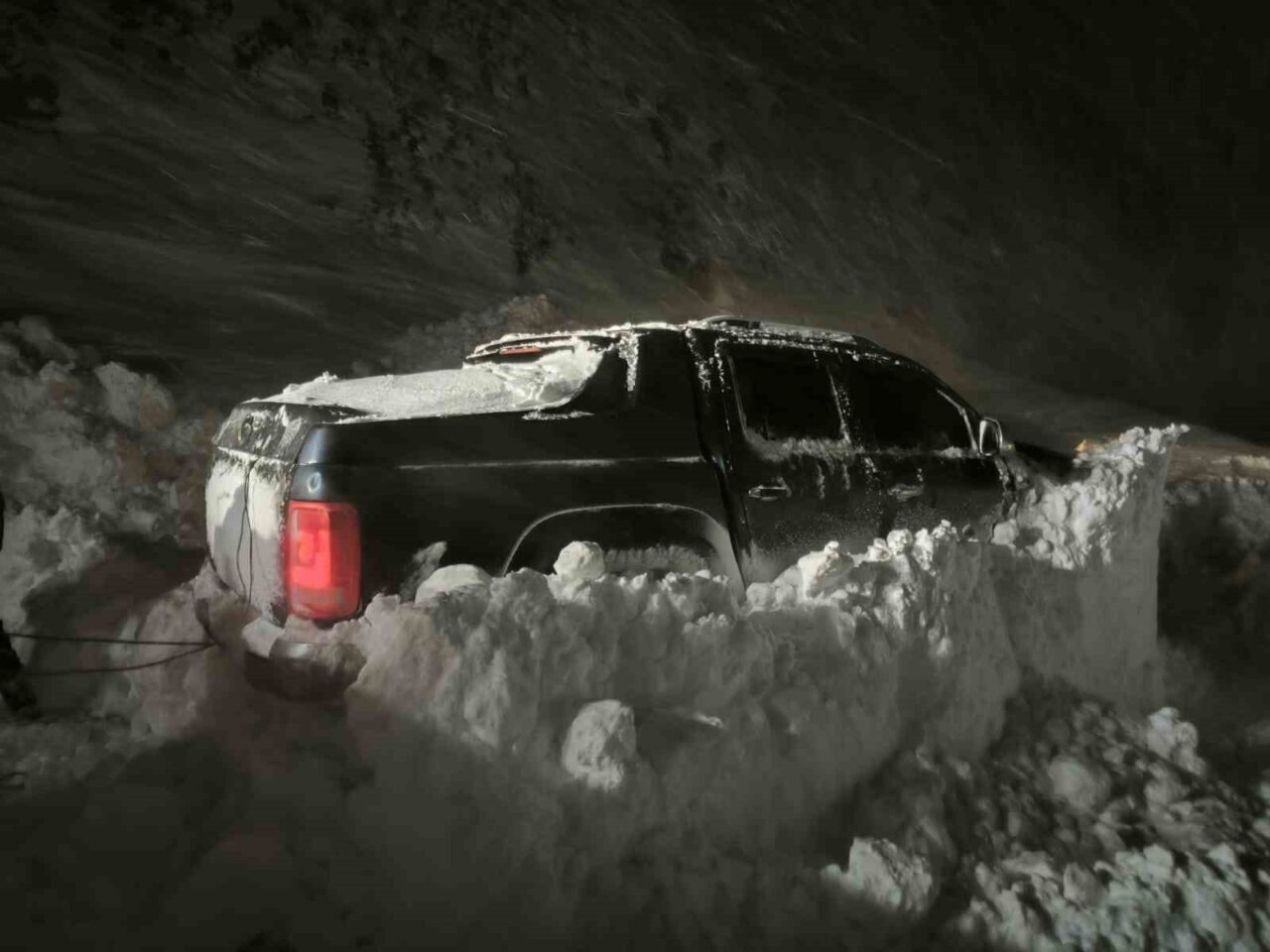 Yoğun kar yağışı ve tipi nedeniyle görüş mesafesinin düştüğü bölgede çalışma başlatan ekipler, yaklaşık 2 saatlik müdahalenin ardından kar kütlesi altındaki araca ulaştı. Araçta mahsur kalan vatandaşlar, ekipler tarafından yara almadan kurtarıldı.