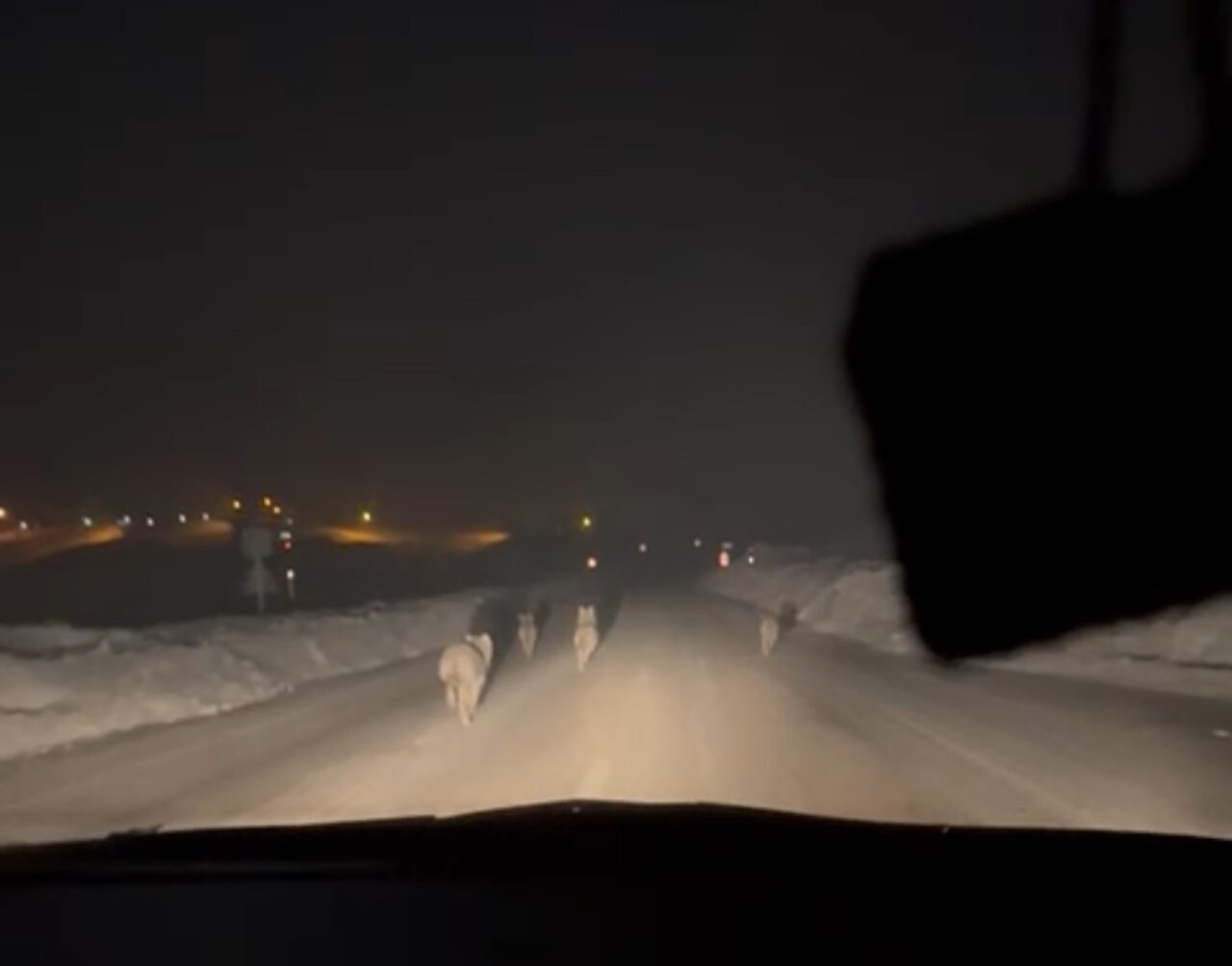 Akşam saatlerinde seyir halindeki bir araçta bulunan vatandaşlar, yol kenarında hareket eden kalabalık kurt sürüsünü fark etti. Bir süre yol boyunca ilerleyen ve yiyecek aradığı gözlemlenen kurtlar, araç ışıklarına aldırış etmeden bölgeden uzaklaşarak gözden kayboldu.