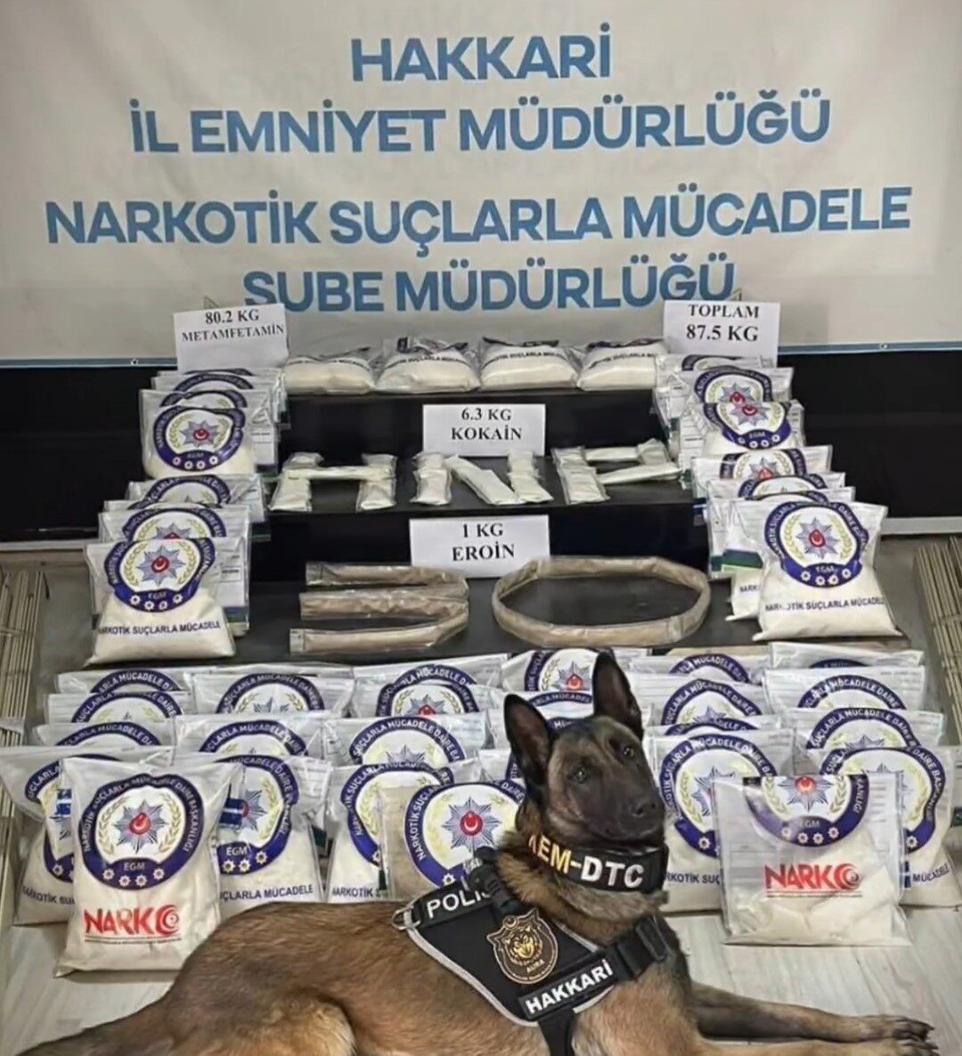 Aramanın sonuçları; 80 kilo 200 gram metamfetamin, 6 kilo 300 gram kokain ve 1 kilo eroin olmak üzere toplamda 87 kilo 500 gram uyuşturucu maddesinin ele geçirilmesi ile neticelendi.
