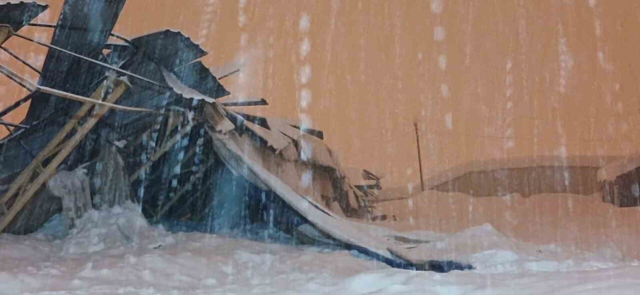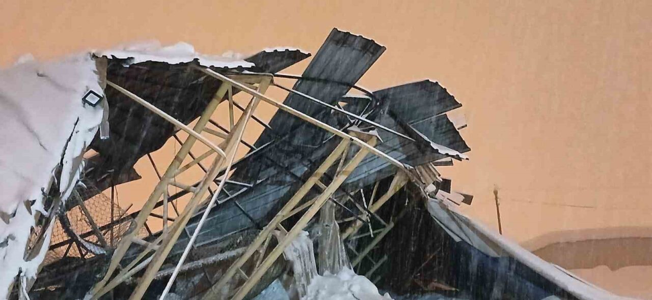 Hakkari’nin Yüksekova ilçesinde etkili olan yoğun kar yağışı, günlük yaşamı olumsuz yönde etkilerken, bir halı sahanın çatısı biriken karın ağırlığına dayanamayarak çöktü.