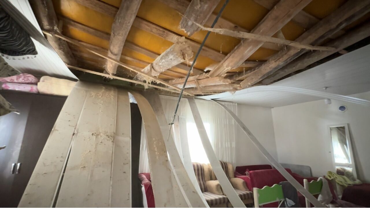Güngör Mahallesi’nde yaşayan İrfan (44) ve Vesile Donat (43) çifti ile 3 çocukları, sabah saat 05.00 sıralarında büyük bir gürültü ve sarsıntıyla uyandı. Bölgede etkili olan yoğun kar yağışının ağırlığına dayanamayan evin bir odasının tavanı, ailenin uyuduğu sırada büyük bir gürültüyle çöktü.