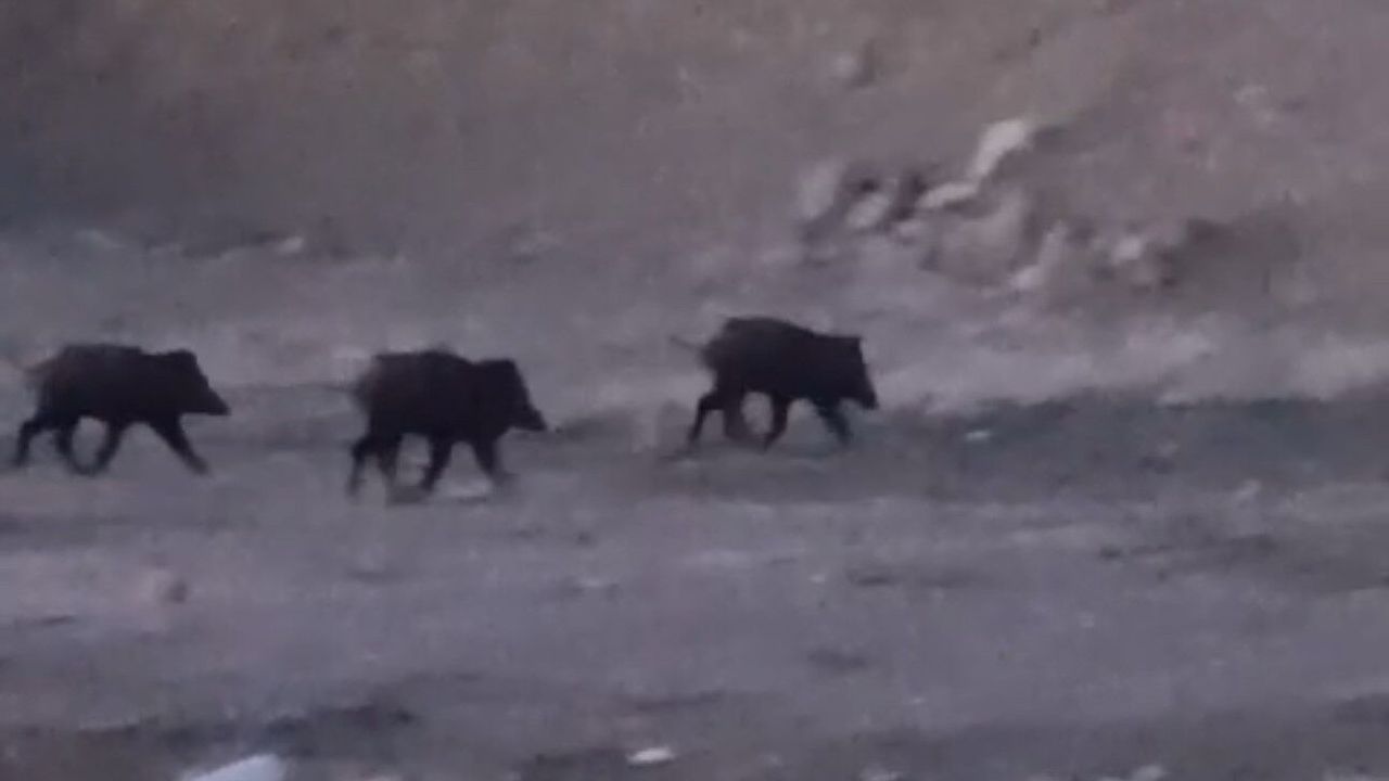 HAKKARİ (İHA) - Hakkari'nin Yüksekova ilçesinde yaban domuzları, cep telefonu kamerasıyla kaydedildi.