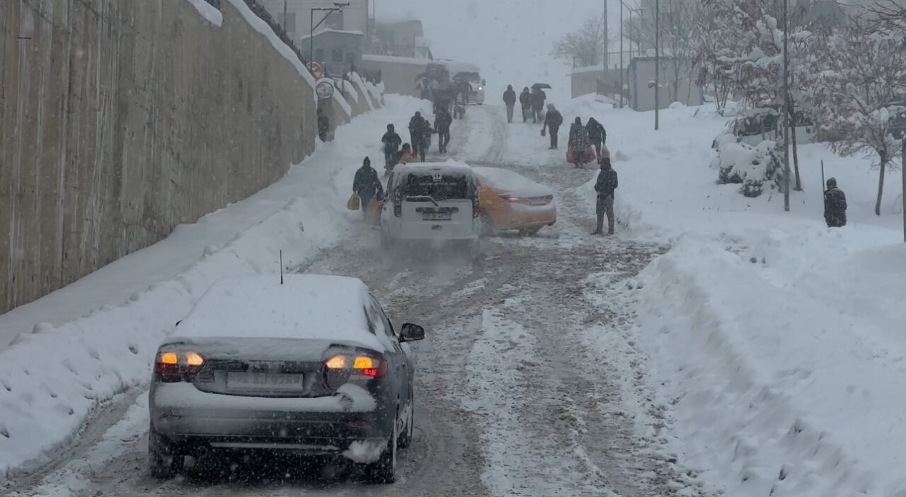 Yüksekova’da Yoğun Kar Yağışı Nedeniyle Araçlar Yolda Kaldı, Vatandaşlar Yürüyerek Ulaştı