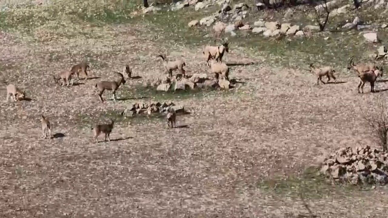 Diyarbakır'ın Çermik ilçesinde nesli tükenme tehlikesi nedeniyle koruma altında olan ve kaçak avlanması durumunda 940 bin lira ceza kesilen dağ keçileri sürü halinde görüntülendi.