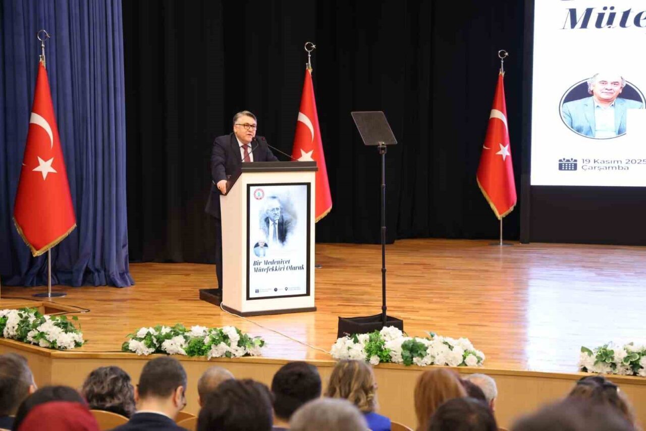 Açılış konuşmasını yapmak için kürsüde yer alan BEUN Rektörü Prof. Dr. İsmail Hakkı Özölçer, Sezai Karakoç’u anmak ve onun derin düşünceleriyle edebiyat dünyasına katkılarını anlamak amacıyla bir araya geldiklerini dile getirdi. “Karakoç’un şiirlerinde ve düşünceleriyle insanlığa ışık olmuş bir mütefekkir olduğunu vurgulayan Özölçer, üniversite olarak bu mirası yaşatmak için edebiyat, sanat, felsefe ve ekonomi gibi pek çok alanda projeler geliştirdiklerini belirtti. Ayrıca, programa katılan Prof. Dr. Şaban Sağlık’a teşekkür ederek, Karakoç’un 4. ölüm yıl dönümünde saygı ve minnetle anıldığını ifade etti.