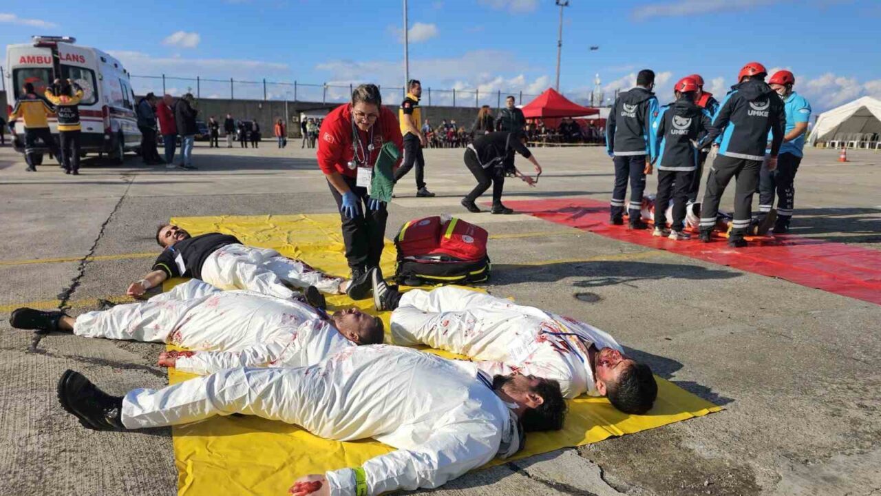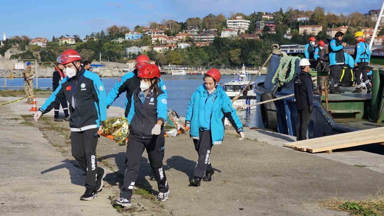 Zonguldak İl Sağlık Müdürlüğü’nün öncülüğünde, Bolu İl Sağlık Müdürlüğü, AFAD, emniyet güçleri, jandarma ve belediye ekiplerinin katılımıyla “denizde gemi kazası” senaryolu kapsamlı bir afet tatbikatı düzenlendi.