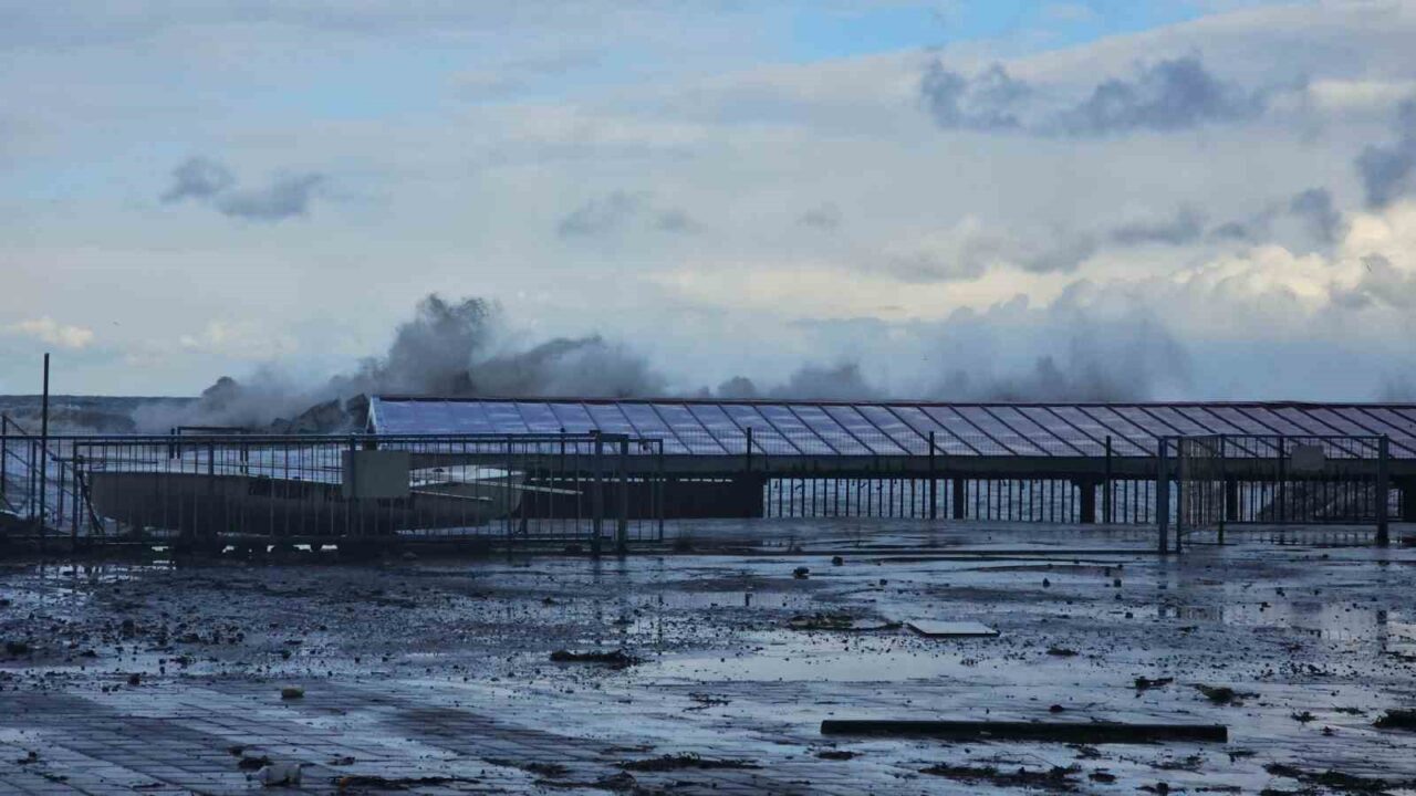 **Zonguldak’ta etkili olan kuvvetli rüzgar nedeniyle dalgalar 7 metrelik duvarı aşarak Kozlu limanına girdi.** Limanda sular yükselince balıkçılar, barınaklarını çöpten ve sudan korumak için mücadele verdi.