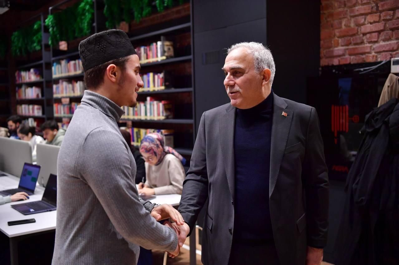 FATİH BELEDİYE BAŞKANI M. ERGÜN TURAN, İLÇEDE GENÇLERİN YOĞUN İLGİ GÖSTERDİĞİ FATİH SULTAN MEHMET SPOR VE KÜLTÜR MERKEZİ İLE DARÜŞŞAFAKA KÜTÜPHANESİNİ ZİYARET EDEREK ÖĞRENCİLERLE BİR ARAYA GELDİ. TURAN, “FATİH’TE GELECEĞİ ŞEKİLLENDİREN EN ÖNEMLİ GÜÇ GENÇLERİMİZDİR” DEDİ.
